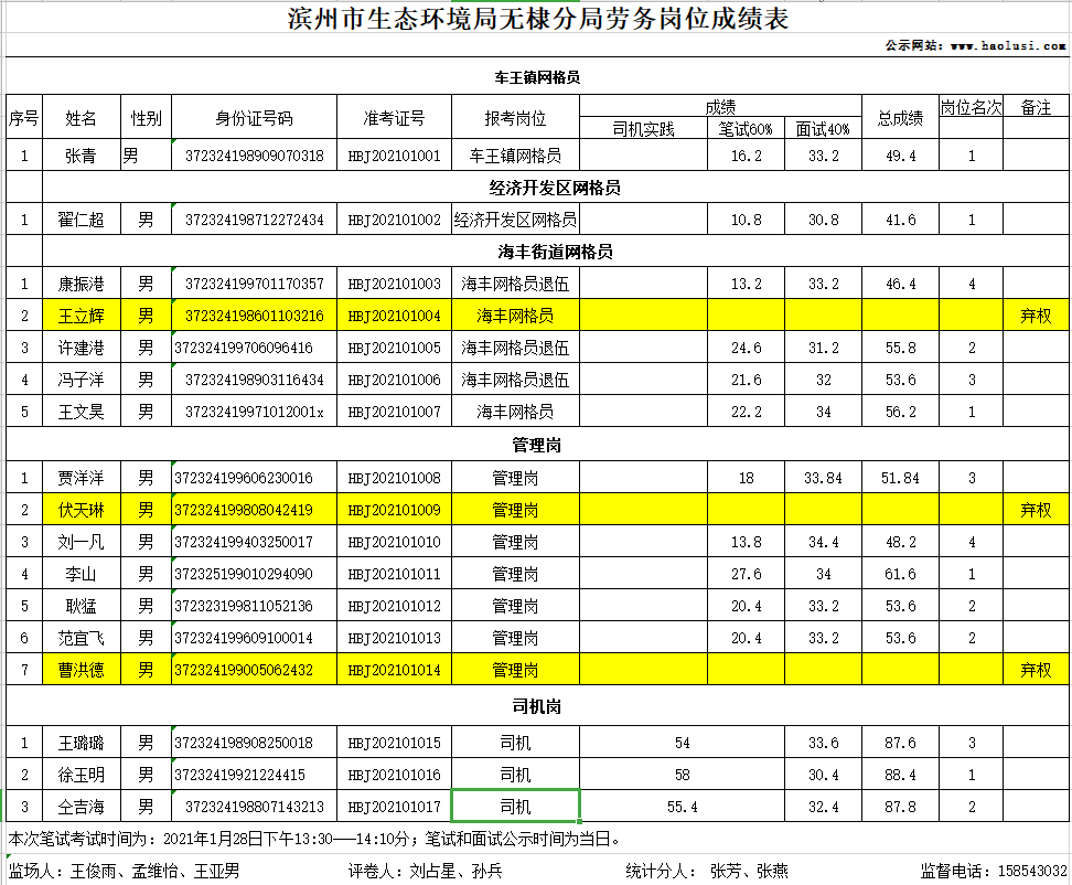 滨州市生态环境局无棣分局劳务岗位笔试、面试
